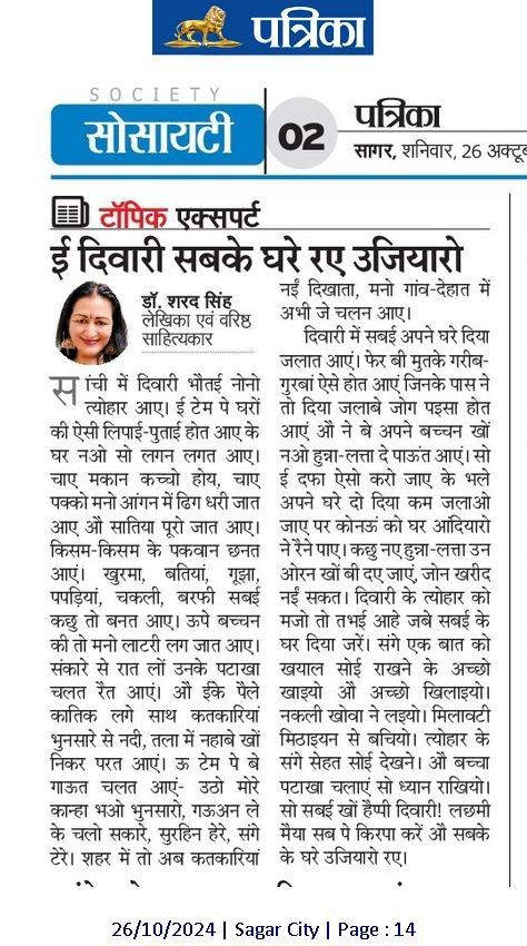 #टॉपिकएक्सपर्ट #डॉसुश्रीशरदसिंह #DrMissSharadSingh #पत्रिका #patrika #rajsthanpatrika #सागर #topicexpert #बुंदेली #बुंदेलीकॉलम