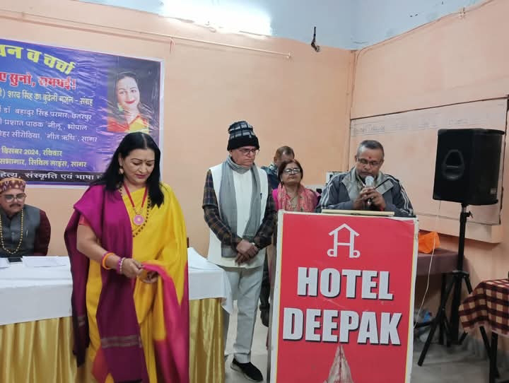🚩आयोजन के मुख्य अतिथि थे बुंदेली साहित्य एवं संस्कृति के सुविज्ञ संरक्षक, कुशल वक्ता बहादुर सिंह परमार जी, आचार्य, हिन्दी अध्ययनशाला एवं शोध केन्द्र महाराजा छत्रसाल बुन्देलखण्ड विश्वविद्यालय, छतरपुर (म.प्र.), अध्यक्षता की सागर के ख्यातिलब्ध गीतकार एवं सेवानिवृत्त वरिष्ठ चिकित्सक 'गीत ऋषि' डॉ. श्याम मनोहर सीरोठिया जी, विशिष्ट अतिथि थीं छतरपुर की प्रतिष्ठित साहित्यकार सुश्री आभा श्रीवास्तव जी। 🙏